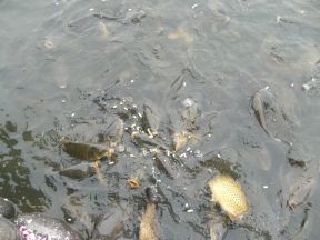 今日は日曜日、なにも予定がない我家…だらだらと過ごし気付いたらお昼も過ぎていた本日2度目の自宅周辺のお散歩をしていると突然旦那が○○池まで歩いて行ってみるか?と言い出したその池は車で行くと3分~5分程度大人がスタスタ歩いて10分程度しかし一才児を二人歩かせながら行くと・・・一瞬迷ったものの他に行く所もないので取りあえず出発☆途中抱っこをせがまれる事間違いなしなので荷物は最小限のデジカメと小銭だけにした。半分程来た所で旦那が『もし、ウ○チしたらどうするの?』と聞いてきた私『…もどるしかないでしょ』旦那『そっか…』二人とも初めて歩く道だったのでなんにでも興味深々あっちに寄り道こっちに寄り道しながら30分程で無事到着♪♪この池には鯉がたーーーーくさんいて餌の売店まであるそこで麩をいくつか購入し池にむかってまくと数え切れないほどの鯉が集まってきた私は何度か来たことあるんだけど、なんど来ても意味もなくその鯉を見て笑ってしまうんだよね( ̄∇ ̄;お魚大好きのふたごっちにも一度体験させてあげたかったでも、寄ってきた鯉をみても反応イマイチ…もっと興奮して大喜びしてくれると思ったのに『とっとー(魚)』とやけに冷静だったよ(__;それよりも池のとなりにある芝生で走り回ってる方が楽しかったみたい散々遊んで疲れてきたのか抱っこをせがむ二人私達も疲れたし帰ろうとしたその瞬間リク『う~ん…う~ん…』う、う、う○ち?!旦那が確認!!ちらっと私をみてニヤリはぁ~してましたか…抱っこするとウ○チが広がっちゃうでも抱っこしてくれと駄々をこねる二人…そして座り込みしかたがないので帰りは抱っこで帰りましたはぁ~疲れた…完全に運動不足だわ(__;