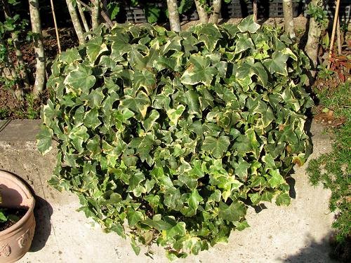 ハート型に刈り込んだアイビーとハツユキカズラの紹介です。アイビーもう13年ほど前の話ですが、姪っ子の結婚式のテーブルの花束(ヒマワリがメイン)の中に、アイビーがあったので、それを貰ってきて、挿して増やしたものです。階段横に植えているアイビーを2年ほど前から型に刈り込んでいます。 15:12ハツユキカズラ妻が気に入って近くの人から貰ってきたハツユキカズラです。刈り込んだので白い部分は少ないですが、新芽の白とピンクが緑の葉の中に映えて綺麗なカズラですね。階段横、道路際でハツユキカズラも型に刈り込んで育てています。 15:37今日は一日趣味の園芸をして過ごしました。花が終わったルリマツリを地面から30cm上を刈って・・電柱横の花壇のマツバボタンを冬越しのためサツキの間に植え替えてから仮植えしていたハボタン6個を移植して、空いた場所にショカッサイと西洋桜草を植え・・門扉を入った花壇のサルビアも冬越しのためプランターに移植して・・残りのパンジー9個をこの花壇に植えました。また、花壇に植わっていたマツバボタンをポットにも移植して・・新芽の挿し芽もして・・いつの間にか夕方となり、一日の趣味の園芸が終わりました。