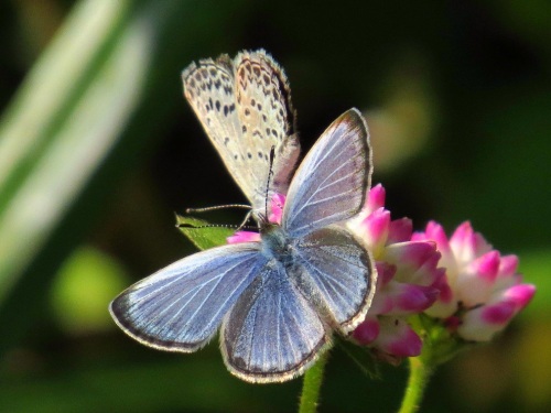 台風が過ぎて、雲の多いが晴れ間覗く天気だったので、久しぶり川沿いを散歩し、蝶などの写真を沢山写したので、タイトルを二つに分けて載せました。裏の土手の階段の所には、キバナコスモスが咲いていて、スズメガのホウジャクが10匹ほど居て、再度写しました。ホシホウジャクホウジャクが葉の上で休んでいるのを見つけました。図鑑、Netで確認して・・茶色の羽からホシホウジャクと思う。ホウジャクの止まっているのを見るのは珍しく・・ほとんどが飛び回っています。ヒメクロホウジャク以前はクロホウジャク?とホシホウジャク?のどちらかと思っていたが・・・調べて居て、ヒメクロホウジャクが正しい事が判りました。●オオスカシバオオスカシバはちょっと大きく、羽が透明なので直ぐ判りますね。ツマグロヒョウモン♂♀キバナコスモスなどの花ではツマグロヒョウモンの♂を見かける事は多く、♀を見かけるのはちょっと珍しく・・♀に♂がプロポーズしている所に遇い・・どうにか写しました。ピントが今一だったが、載せる事にしました。明るさ、コントラスト調整して・・・キバナコスモスには、他にヒメアカタテハが10匹ほどいました。ベニシジミ帰り、裏の階段横の泡立ち草にベニシジミが2匹いて、ここでも♂が♀にプロポーズをしていました。おまけ今日の散歩で写した野草を・・●タンポポ前の公園の砂場横に咲いていたタンポポ・・綿毛と花が写せました。●イヌタデ(アカマンマ)道端などで良く見かける雑草のイヌタテですが、今は裏の階段下の草はらの隅に少しだけ咲いています。赤い花が可愛いですね。●ヤブマメ最初は大きな橋の下の川沿いで見つけたヤブマメですが、墓地の先の土手にも沢山ありました。周りの草が邪魔をしてない、花が綺麗な所を写しました。
