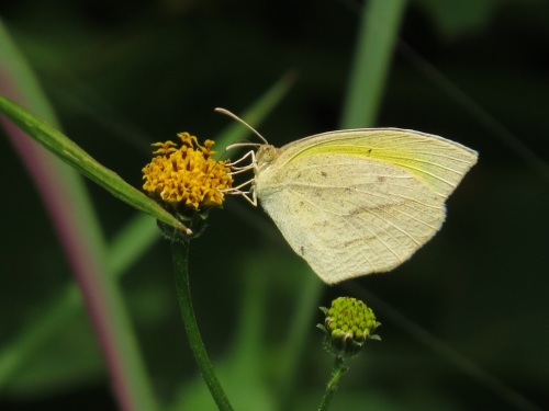 裏の川沿いを散歩して写した蝶を紹介です。ツマグロキチョウ折り返し地点手前で久しぶりにツマグロキチョウに遇いました。キチョウに比べ羽の周囲が角張っていて、ちょっと淡い黄色なので見分けがつきます。このタイプの蝶は中々羽を広げた所は写せませんね・・・顔をUPで●キチョウキチョウは散歩で良く見かけます。ツマグロキチョウとの比較にキチョウを写しました。キチョウは黄色が鮮やかですね。キチョウは羽の黒い斑点模様が少し違ったタイプいますね。黒い斑点が少ないのも・・・顔をUPでツマグロキチョウとの違いで、羽の色と模様とは別に触角が違うのを知りました。●モンキチョウ川沿いで見かける黄色蝶のもうひとつは、モンキチョウです。裏の階段下のキバナコスモスに止まっていたのを、上手く写せたので比較に載せます。イシガケチョウ折り返し地点で久しぶりにイシガケチョウに遇い、歩道に降りて居た所を写す事ができました。散歩コースではススキがちょっと前に咲き始め、いつの間にかセイタカアワダチソウが咲き始めていました。裏の階段の所の土手にも、背の低いアワダチソウが咲いていて、イシガケチョウが一匹いました。アオスジアゲハ裏の団地側の川にはミゾソバの花が沢山咲いていて、蝶などの昆虫が沢山集まっていました。特にセセリチョウが沢山いましたね。アオスジアゲハのブルー(カワセミブルー)がやけに綺麗に見えたので写しました。川に生えているミゾソバなので、上から写す事が出来ました。特に予定がないので、1時間ほどミゾソバの花に来る昆虫達を観察しました。スズメバチ、キイロスズメバチ各一匹が何度となく現れ、花に居るセセリチョウなどの昆虫を捕まえよう追いかけて・・花に居る小さな虫を食べたり・・スズメバチはナガコガネグモを捕えた所を目撃するも写せずでした。また、キイロスズメバチの方が素早く(倍の速度)攻撃するのに驚きました。我家の庭に居たジョロウグモが、数匹いつの間にか居なくなっていて・・良くスズメバチを見かけるし、多分スズメバチに食べられたのだと思う。