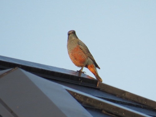 2013-10-28今日写した鳥は・・午後14時前に、前の家の屋根にイソヒヨドリが来ているのに気付き・・・日没の17時半を過ぎてもまだ居ました。たまに上を飛ぶ虫を捕まえていいる所をみましたが、何故だが?前の家の屋根がとても気に入った様です。イソヒヨドリ♂逆光なのでちょっと残念ですが、二階に行き写真を10枚ほど写してしまいました。今日の川沿いの散歩で写した鳥は・・ヤギの居る家の手前の歩道にセグロセキレイといっしょ居たキセキレイです。セグロセキレイは上手く写せず・・蜘蛛?を咥えたキセキレイは写す事が出来ました。キセキレイ