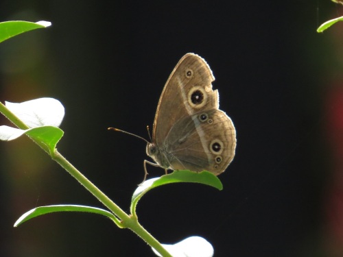 2013/10/22花や鳥や昆虫の写真を沢山写したので、タイトルを替えて蝶・蛾を紹介です。朝、畑へ野菜の苗を持って行く時に、ヒメジャノメが門扉の所の垣根の葉で休んでいたので、逆光だが、とりあえず1枚写し・・カメラを向けていたら、羽をちょっと開いてくれて・・陽を背にして、もう1枚・・ヒメジャノメ神社よりちょっと下流、フジバカマの花が咲いている所へ行ってみました。ひょっとして、アサギマダラに遇えるかもと思い(アサギマダラは今の時期は何処を飛んでいるのだろう?)・・フジバカマの花には、アカタテハが2匹、セセリチョウが一匹でした。アカタテハ今、川のミゾソバの花に来る昆虫を観察していますが・・・目につく昆虫では、セセリチョウが一番多いですね。イチモンジセセリ神社近くの畑の隅にセージ(ラベンダーセージ?)が紫の花を沢山咲かせていて・・ホウジャクが花の蜜を吸っていました。ホウジャクはクロホウジャクで良いと思うが??クロホウジャク神社下の川にハグロトンボ♂が一匹いました。川に沢山居たハグロトンボですが、最近見かけなくなりましたね。ハグロトンボ♂直ぐ近くにカワセミが居たのに気付かず・・逃げられてしまいました。ちょっと下流に行ったので、カメラを向けるも逃げられて写せずでした。