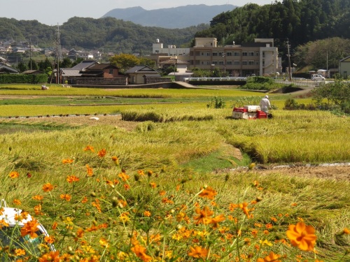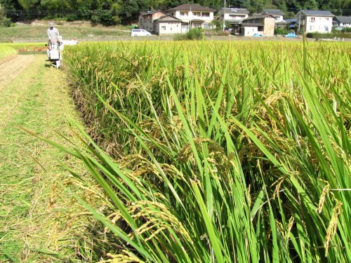 台風の被害を心配して、実家では3日前から稲刈りを始めました。例年より一週間ほど早くなりました。台風がそれるも稲の害虫のウンカが発生していて早めに刈ると事にしたそうです。稲刈り・脱穀した後、乾燥器に入れて3日ほど乾燥するので、乾燥器に入りる量だけの稲刈りをコンバインでします。コンバインの運転はした事がないので、手伝いはコンバインが倒した稲を立てるのと、刈った米の運搬と乾燥器に入れるが主です。いつもは兄夫婦、ひまわりさん、私の4人ですが、ねえさんが病院の日なので、今日は男3人でやりました。22歳の力持ちと一緒だったので、私はとても助かりました。兄がコンバインで稲刈りをしている所を・・9:38田んぼの周りを刈った後、真ん中を刈って行き・・10:03ひとつの田んぼ、最後の一列・・気持ち良さそう11:0613:59午後も一時間ほど刈って・・手伝いは終了しました。まだ、2回ほどの稲刈りが必要で、台風が来なくて晴天が続くと良いですね。