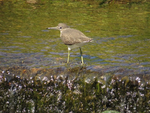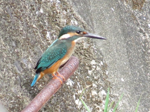 ミゾソバの花に来る昆虫を見に行った序に、畑の様子を見に行って・・近くのシラネセンキュウの花を写していたら、カワセミが直ぐ近くに居たが・・ちょっと下流へ飛んで行った。小さな橋の所へ行ってみるとカワセミが居ました。ちょっと遠くから一枚を写し・・近づいても逃げなかったので、橋の上に座り込んで沢山の写真を写しました。稲刈り後の畑に居た沢山ハトが突然飛び立ったのを見上げ・・短い尾を上げた所がちょっと可愛いですね。川の魚を狙ってダイブする度、両側を行き来して・・ホバリングやダイブの姿を何度も見るも写せずでした。2度ほど、メダカほどの小さい魚を捕え・・ちょっと大きな魚を捕え、直ぐに食べられないので、口に咥えた所が写せました。最後にちょっと連写、飛び立つ瞬間が写せました。魚を捕えて止まった場所が右側のちょっと暗い場所だったのが、ちょっと残念です。でも光学x50倍のカメラにしては、上手く写せましたね。おまけセグロセキレイ昨日、前の公園に一羽が来て居て、青虫を食べている所を写す事が出来ました。