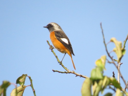 2013-10-27朝早く、我集落にジョウビタキが冬が近づいているのを知らせにやって来ました。一週間ほど前に隣町で初見、我集落にもやっとやって来ましたね。裏の家の玄関先で鳴いていたのを見て、裏の土手の柵の所で写す事が出来ました。慌てて写す必要はなかった様で、一日中公園や周囲の家々を回り鳴いていました。前の家に来た所を・・・オオイタでは、この鳥を鳴き声からヒンカチと呼んでいます。ジョウビタキ♂モズ♂、前の公園の縄張りを荒らされると思ったのか?突然現れて電線の上で縄張りを主張していました。モズ♂今日も庭の手入れをして・・駐車場の影に、今年最後のアサガオがひとつ咲いていました。アサガオ一輪我家は今黄色花が沢山咲いています。コバノセンナ、メランポジュームと、このツワブキです。ツワブキも満開となりましたね・・ツワブキ一番賑やかに咲いているコバノセンナ・・沢山花が開いてきました。コバノセンナ午後、庭の花壇と玄関横にやっと葉ボタンを植えました。間違えて背丈が高いタイップを育ててしまい・・・ちょっと深めに植えました。