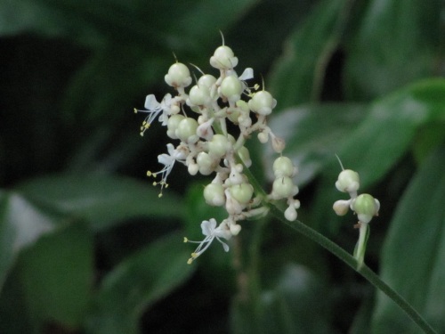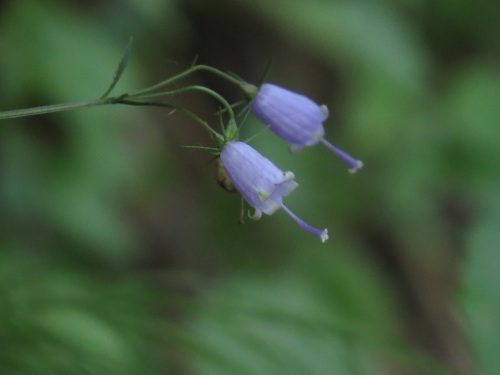 2013-10-29 ヤギの居る家より先は、秋の草花を探して、森際の車道を散策してみました。森際の土手にブルーのツリガネ状の可愛い花を見つけ・・ツリガネニンジン(釣鐘人参)土手は急斜面で、上の方に赤い実を見つけて・・サルトリイバラ(猿捕茨)途中、人ひとりが通れるほどの森への入り口があり・・覗くと10畳ほどの広場になっていて、白い花が見えたので、ちょっと入ってみました。そこにはシラネセンキュウとヤブミョウガが沢山育っていました。ヤブミョウガ(薮茗荷)の実シラネセンキュウにはスズメバチが3匹ほど来てましたが・・・可愛い花びらが判る様に接写で写してみました。シラネセンキュウ(白根川芎)車道脇の土手に咲いているヤマハッカを再度写しました。再度写すも太陽が当たるとコントラストが付き過ぎてです・・ヤマハッカ(山薄荷)カラスウリが色付いてきましたが、木などに絡まって垂れ下がったのは少なく折り返し地点よりちょっと先で見つけ写しました。カラスウリ5002 posted by (C)大分金太郎カラスウリ墓地裏の土手に黄色い可愛い花が沢山咲いてる野草があります。今日写し、調べたらヤクシソウでした。ヤクシソウ(薬師草)秋なのに・・・団地を結ぶ橋の下、日があまり当たらない場所の歩道の真ん中にスミレが育ち花を2つ咲かせていました。スミレ(菫)