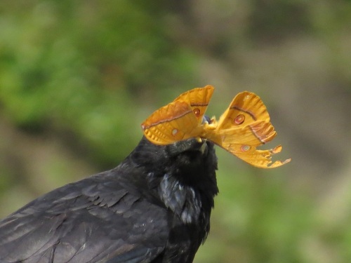 秋晴れで風も弱く穏やか一日でした。最高20.0℃、最低14.9℃。最高気温が20℃はこの秋一番の低さです。午前中はちょっと酒が残る中、ポピーとシレネの種まきをしました。沢山の種を蒔いたので、発芽後の間引きが大変と、発芽前から思うのでした。午後は、のんびり裏の川沿いを散歩しました。今日写した写真は??ヤギの居る家の所で、カラスが歩道に降りて落ち葉?を咥えて・・近くの電柱に止まったので、とりあえず写して見たら、綺麗な蛾を咥えていました。調べたら、ヤママユガでした。ヤママユガを咥えたカラス直ぐ近くに丘に降りたので、近づいて行くと逃げて・・名前を調べるために下に落ちていた羽を写しました。ヤママユガの残骸折り返し地点で、アキアカネ?に初めて遇う。ブログを始めてから川で初めて見たアキアカネ?です。ナツアカネとアキアカネは非常良く似ていて、体の黒い模様に違いで見分ける様だが、良く分からず、マユタテアカネよりちょっと大きいのでアキアカネとしました。顔をUPでちょっと寒くて寝ぼけていた様で、一度飛び立って違った場所に止まった時・・・目の前にそっと指を出すと止まってくれました。アキアカネ♂裏の階段横の泡立ち草の所で、草に2匹のヤマトシジミが並んでいました。後ろが♂で、♀にプロポーズ中です・・・ちょっとUPで結局♀にその気がなく、♂は嫌われました。ヤマトシジミ♂♀団地を結ぶ橋の下のシラネセンキュウをまた写しました。でも、今までの中で一番気に入った写真が写せました。更にUPで・・・シラネセンキュウ裏のムベの下にツワブキを植えていて、花が咲き始めました。ツワブキが咲くとモイカ(アオリイカ)釣りの始まりです。明日、行こうと思ったが夕方から雨の予報ですね・・・ツワブキおまけ散歩の帰り道、上空にはうろこ雲が出て居ました。うろこ雲
