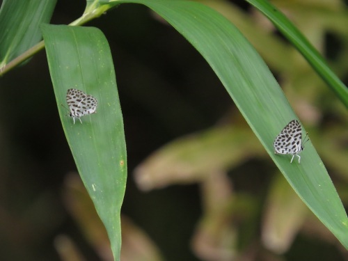 川沿いの散歩で蝶、トンボも写しました。ゴイシシジミは笹(竹)の葉に付いているアブラムシを食べるので、竹林に行けば会えるシジミチョウです。久しぶりに小さめの竹が5本ほどある所に会いに行ってみました。最初は竹の葉の裏に止まっていたので、移動して貰い・・・竹の葉の表にいる所を写しました。撮っていたら、もう一匹が近くに止まったので、2匹を写す事が出来ました。同じ葉に2匹が止まったので、プロポーズすると思ったが、顔を見合わせてから直ぐ一匹が逃げてしまいました。葉に残った一匹。カメラを近づけても逃げないので、接写で写してみました。ゴイシシジミ散歩で良く見かけるヤマトシジミです。ルリシジミととても似ているので、間違い易いですが・・目の色が黒いのがルリシジミで、ネズミ色なのでヤマトシジミと判断しました。ヤマトシジミ♂ヤギのいる家の所で、ヤマトシジミが合体しているのを見つけました。羽を開けば♂、♀の判断が出来るのが・・多分、色の濃い上が♀で、白い方が♂と思う。合体したヤマトシジミ草(カラムシ?)の葉にヒカゲチョウが羽を広げて休んでいました。羽を閉じた所を写したかったが、逃げられて・・調べたらクロヒカゲでした。クロヒカゲまだ、温かい日中には沢山のトンボを見かけます。ヤギの居る家の所の雨水が溜まった田んぼで、アキアカネのツガイ2組が産卵をしていました(ミヤマアカネのツガイも頑張っていました)。♀を写すのは、このチャンスを逃すと難しいと思い、頑張って写しました。アキアカネの産卵団地を結ぶ橋の下の歩道隅の水たまりで、産卵してたマユタテアカネのカップルです。マユタテアカネの産卵今一番多く見かけるのはミヤマアカネ、マユタテアカネですね。ミヤマアカネは羽の先が茶色なので直ぐ判るが、羽が透明なマユタテアカネとアキアカネは見分け難いです。目での見分け方は大きさで、アキアカネの方がちょっと大きいですね。昔は皆マユタテアカネと思って見ていたので判らなかったのでしょうね・・また、沢山居たハグロトンボは2匹見たのみで、シオカラトンボはほとんど見かけなくなりました。墓地の所で一匹見つけたオオシオカラトンボです。オオシオカラトンボ♂川沿いの散歩で、野菊も土手などに沢山見かける様になり・・ミツバチが止まっていたので写しました。ノギクとミツバチおまけ畑と庭で育てている食用菊の花がやった咲きました。秋咲く菊の中で、一番早く咲いてくれる菊です。オオイタでは菊の花を食べる人が少ない(居ない)ので、育てる人が居ませんね。酢和え物に入れると、黄色い色が食をそそり、美味しいと思うのですが・・・追記今日は花が終わった庭のマツバボタン、ポーチュラカの片づけと、芝の周囲の刈り取り・整備をして・・裏の垣根(プリペット)を見たら、蛾の幼虫(小さい青虫で糸が出るやつ)に葉を全部食べられて枯れ木の様になっていたので、慌てて消毒しました。ちょっと見ない間に一気に蛾の幼虫が発生した様です。近くの家も北側の垣根は同じ様になって居ましたね。