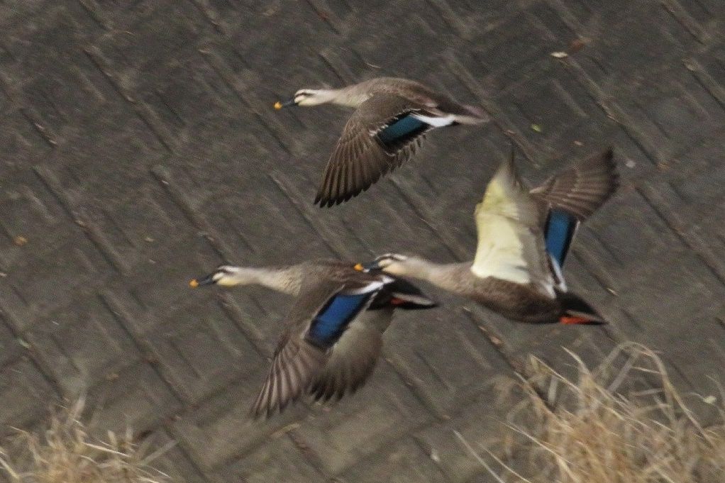 裏の小川沿いの散歩・散策で撮った鳥の紹介です。裏の川と隣の集落の川が合流している所にカルガモが30羽程集まっていましたね。カルガモ達 14:05川に育っている草が邪魔で、逃げる飛翔姿を撮りました。最初に半数程が飛び立ち・・ カルガモ達 14:10次に残りの半数程は飛び立ちでした。マガモ♂&カルガモ達 14:10連写で適当に撮った写真を見たら、マガモ♂が一羽写って居ましたね。マガモ♂_6737 14:10ちょっとトリミングしてマガモ♂だけを・・・カルガモ達 14:10ちょっと上流の川沿いに道がない所へ飛んで行きでした。コガモ♂ 13:28川沿い散歩の途中の川にコガモが4羽居て食事をしていて、中に♂がいたので撮りです。コガモ水浴び 14:28帰り道、水の音に振り向くコガモ1羽が水浴びをしていました。ここにはコガモは3羽居て、♂を撮った所より200m程下流でした。コガモ羽ばたき_6751 14:28水浴び後の羽ばたきを・・・コガモ羽ばたき 14:28再度水浴びして・・・水切りの羽ばたきをしている所を連写で・・・コガモ羽ばたき 14:28コガモ羽ばたき 14:28コガモ羽ばたき 14:28多分♀と思うが、この時期は♀と同じ色の♂が居たりしてです。コガモの水浴びと羽ばたきを撮ったのは、初めての様なです。これで、7日の川沿い散歩で撮った鳥の紹介は終了です。