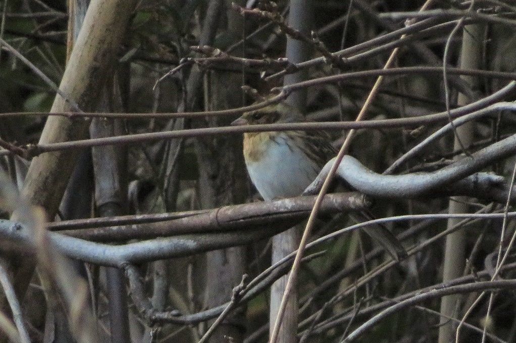 朝はちょっと冷え込み、日中晴れていたが、午後15時頃からは曇り。最低1.0℃、最高11.7℃。今日、釣りに行こうと思いY氏に連絡したが、18時から傘マークが出ていたので行くのを止めました。でも21時になっても雨は降らずでしたね。午前は食料の買い出しの運転手をして・・・午後、裏の小川沿いの散歩に行き、ミヤマホオジロ、ノスリに会い、イカルも裏の木に居て綺麗に撮る事が出来ました。イカル 12:59裏のゴミ置き場の所の木にイカルが4羽ほど止まって居ましたね。イカル_7121 12:59近づく前にいるのが判ったので、人間ズームをしながら撮り、綺麗に撮る事が出来ました。上流で、ノスリが杉の木の隅に止まるを確認して、逆光の中遠くから撮りです。ノスリ 13:41居場所が悪かったのか、ノスリの方から手前の木に飛んで来て・・・ノスリ_7140 13:42ちょっと休んでから、私に気付いたのか逃げて行きです。ノスリ 13:42飛び立った所は撮れなかったが、竹林の上を飛んで行く所が画面の上に撮れました。ノスリ 13:42こちらはちょっとピンボケになったので小さめに載せです。ミヤマホオジロ♀_7148 13:54ちょっと前に撮った所にミヤマホオジロが4・5羽居て、雑木林に逃げられでしたが、ちょっと待って見たら、♀が顔を出してくれました。ミヤマホオジロ♂ 13:59更に待っていたら、2羽出て来て、♂が居ましたね。今季初撮りです。少しでも綺麗に撮ろうと、人間ズームで近づくと森へ逃げて行きでした。シロハラ 14:21帰り道、崖に溜まった落葉の所にシロハラが現れです。久しぶりなので撮りました。チョウゲンボウ♀ 13:09昨日の散歩では見かけなかったが、神社のイチョウの木に止まって居ましたね。飛び立ちそうにないので、散歩に行きでした。チョウゲンボウ♀ 14:53帰りには、人家の屋根に居ましたね。モズ♀♂_7166 14:42畑の支柱に♂が止まっていたので、カメラを向けると♀が現れです。2羽が並んで止まっている所は撮れなかったが、♂が飛び立った所が画面下に入っていました。モズ♂ 14:50♀がちょっと離れた所に居たので、♂♀のペアが並ぶのを待って見たが、♀は竹林の方へ行ってしまいでした。今日の散歩で飛び回っているモンキチョウを5・6匹見ましたが、他の蝶は見かけずでしたね。釣りに行けなかったお陰で、ミヤマホオジロ、ノスリに会えて、イカルも綺麗に撮る事が出来て良かったです。