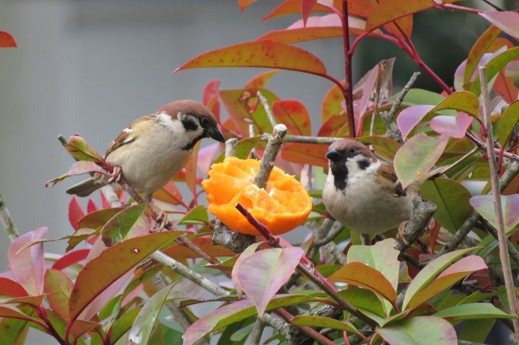 曇り、夕方近くから雨となる。最低7.5℃、最高10.5℃。今日は庭でヒマワリの種蒔きとヒナゲシの定植などをやりです。ヒマワリは去年採取した種で、ミニヒマワリから大きく育つヒマワリなど色々・・ヒナゲシの定植は垣根とアプローチの間に植えて、15ほど植えて雨が降り出し止めました。庭で撮った鳥の紹介です。垣根に挿したミカンにメジロが来ますが、庭に居るスズメの方が良く食べです。メジロ 12:05庭にメジロのペアが来て食べ始めると・・・スズメ 12:05直ぐにスズメが着て、メジロはスズメが食べ終わるのを近くで待って居たり・・・スズメ 12:07スズメと一種に食べる事はなく・・・メジロ_7298 12:08スズメが居なくなると、メジロが食べです。メジロもペアで来ているが、一緒に食べる事はなく、♂が先に食べです。♀が食べていて、♂がまた食べたくなると♀を追い払いです。スズメ水浴び後 12:12一番慣れているスズメがずぶ濡れでナニワイバラの上に現れです。何処で水浴びしたのだろう?スズメ土浴び 12:14死んだスズメではありません。直ぐ下に下りて、土浴びを始めです。乾いた土を使って乾かすのでしょうか?スズメ達 12:16次はザクロの木に止まって、逆立てた毛や羽を震わせて乾かしていました。近くに居た水浴びをしてないスズメも毛繕いをしてでした。スズメ土浴び後_7303 12:16逆立た毛の後ろ姿・・・スズメ 12:17ダイブか乾いてきましたね。スズメ 13:24スズメもミカンを一緒に食べる事は少なくでしたが、ペアでしょうか、仲良く食べて居ましたね。スズメ 15:19今日も午前にヤマガラのペアが来て、筒巣の中に入りでしたが、午後にはスズメが中から顔を出していました。スズメ_7311 15:19去年、スズメが巣材を少し運び込んでいて・・・スズメが巣の番をしている様に見えでした。ヤマガラ 2/21 11:30昨日もヤマガラのペアが庭に来て、巣筒の中に入りでしたね。ヤマガラ_7263 2/21 11:30去年スズメが運び込んだ枯草の巣材が少し見えですね。スズメは丸い竹筒でも巣を作りそうですが、ヤマガラはどうなんでしょうね?どちらかが子育てをしてくれると嬉しいですね。