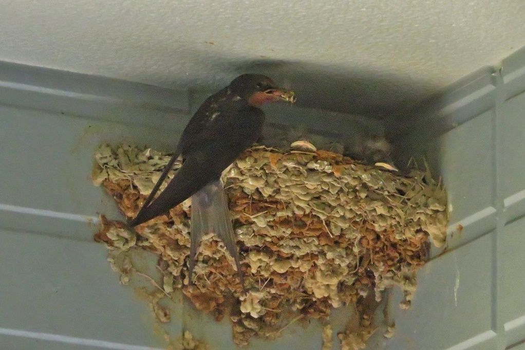 我が家の巣で子育て中のツバメですが、親鳥の頑張りで雛5羽が元気に育っていて、5月17日で生後19日目となります。もうすぐ巣立ちですね。ツバメ雛達 12:12玄関を出入りするたびに、カラスに襲われたないか、雛は何羽いるか、確認して・・・ツバメ雛達_0650 12:09暗い場所なので、日中明るくなってから、玄関ドアを開けて写真を撮りながら雛が5羽居るのを確認してです。産毛も無くなり雛から巣立ち前の幼鳥になりましたね。ツバメ子育て 12:12親鳥が餌を運んで来た所を・・・ツバメ雛達 12:18雛の羽の様子も確り生えそろい、もう飛べそうですね。5月16日(生後18日目)の撮影・・・ツバメ2羽_0630 11:52最近、親鳥達6羽ほどが我が家の周囲に集まり、庭を飛び回ったり、巣の方を覗いたりです。ツバメ飛翔 11:53巣の方へ飛んで来た所・・・ツバメ飛翔 11:53庭を飛んで居る所・・・巣立ちが近くなるとツバメ達が応援に集まるのでしょうか?子育て中の親鳥は巣の近くに居て、激しく鳴いて巣の方に来るのを拒んでいる様なです。ツバメ子育て 14:12生後18日目も雛5羽が元気に育っていて、一安心して・・・ツバメ雛達 14:21ツバメ雛_2746 14:34生後18日目、確り羽根が生えそろい、産毛が無くなりです。ここまで育てば一安心・・・明日か明後日には巣立ちですね。