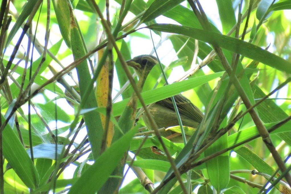 午後、裏の小川沿いの散歩に行き撮った鳥の紹介です。昨日、石材店の所でコシアカツバメが巣材集めをしていたの撮り、また会えるのを楽しみに散歩に行きましたが、コシアカツバメには出会えずでした。しかし、ホオジロ幼鳥 13:02裏の斜面の竹林で、ホオジロの幼鳥が親鳥と居ましたね。竹の葉が邪魔でしたが、どうにか撮れて・・・ホオジロ幼鳥 13:06移動して、木の枝い止まった所も・・・UPで撮りました。UPにしないとピントが合わず・・ホオジロ幼鳥 13:07幼鳥が2羽いて、もう一羽の方もUPで・・・ホオジロ♂親鳥 5/23 13:21昨日(23日)、撮った親鳥です。この日も親鳥は逃げずに泣いていて、近くに巣が有るのではと思いましたが、巣立った雛の子育てをしていたのですね。ウグイス 13:27ホオジロが子育てをしている近くで、ウグイスが激しく鳴いていたので、子育てをしている様なでした。木の枝や葉が邪魔で姿が見えずでしたが、一枚だけ綺麗に撮る事が出来ました。セグロセキレイ幼鳥 15:13上流の方まで行った帰り道、セグロセキレイの幼鳥が一羽だけで水浴びをしていましたね。おまけ;木の実・・・アーモンドの実畑の持ち主さんが育てているアーモンドに実が生っていて、ダイブ大きく育っていました。桃の実畑の持ち主さんは桃も育てているが、袋を被せているので確認出来ず・・上流の方で生っていた実を撮って見ました。豊後梅今年は豊後梅の生りが悪い所が多い様ですが、散歩の途中にある手入れしてない豊後梅には沢山の実が生っていました。赤タマネギ収穫午前、妻と畑へ行き・・・収穫した赤タマネギです。今年は、何処も玉ねぎの育ちが良かった様ですね。