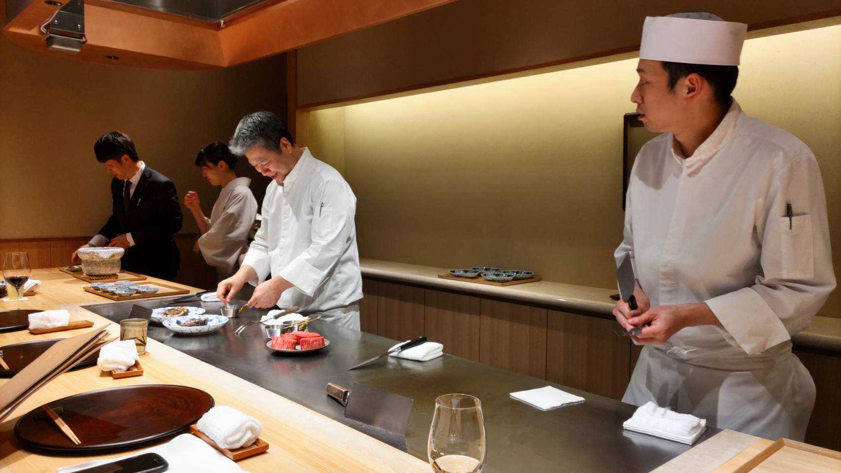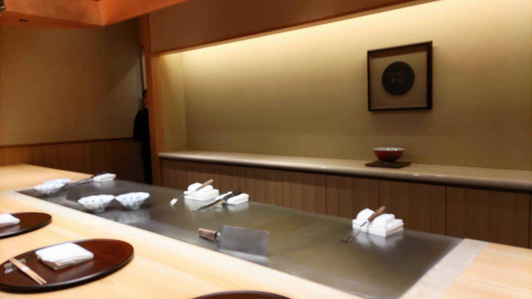 お店は、神楽坂から移転したばかりの、和食と鉄板焼の『中むら』というところ。