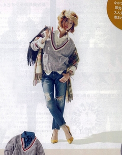 JILLE12月号に掲載された、Ungridのプレッピーニットです。UNGRID(アングリッド)プレッピーニット GRAY・O/WHITE(グレー・オフホワイト) レディース/トップス/Vネックセーター/アメカジ・トラッドスタイル/ボーイズフィット 111230567501 2012 W新作商品 雑誌掲載/MOOK本/ViViUngrid ※画像クリックで商品詳細ページへ