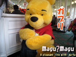 ぎゃぁあ~~喰われたぁ!金曜に突然ディズニーランドに行ってきました♪いも(旦那)の会社が創立記念日でお休みだっていうので、天気もイマイチだし、平日だし、こりゃ人が少ないかな?( ̄▽ ̄)と思って急遽決めました。、、、、しかし(--;)なんかすごい人!!!もしかして春休み??おまけに極寒(><) 寒すぎるぅ~~~~!!前日にランドの開園時間を確認して(9時)それでも8時前に入り口に着くように行きました。というのは、去年 クリスタルパレスレストランのキャラクターブレックファーストに定員オーバーで入れなかったので、今回は開園ダッシュで席をとるつもりだったんです。なのに、、、何故か9時じゃなくて8時に開園しちゃいました。ええ~~~~ やっぱ人が多いから?8時前に行ってたので なんとかダッシュで席を確保できましたが、もし9時に行ってたら今回もアウトでした(><) 結構豪華♪ここは プーさんや ティガーなどが各テーブルを廻ってきてくれるんです♪、、、というわけで、一番最初のプーさんの写真はそのときのものです(^^;)ぷー太は プーさんが大好きなのでもうもう大喜びでした。大興奮のぷー太を皆さんにお見せしたかったです(笑) パレード♪チビッコ参加型のパレードだったのでぷー太もはりきって参加しました(^^=) 大空に羽ばたいたよ(^^)乗り物は ぷー太の年齢や身長などであまり乗れなかったけど 前回も紹介した 未来のチャレンジャー証明書をもらったし、それでも バズーや ハニーハントとか乗って楽しかったよ(^^)そうそう スティッチにも会いました♪写真も撮れました(^0^)やった!!そして、、、 死亡(笑)燃え尽きました(笑)楽しかったね♪また行こう♪