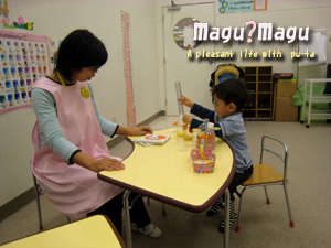 ぷー太はこの3月からめばえ教室のあゆみコース(2歳から2歳半まで)にはいることにしました(^^)幼稚園前の練習にいいかなぁなんて思ったんです。場所は近所のヨーカ堂の中にあって通うのも便利です♪年に合計40回 週1回で月にだいたい3回で月謝は6000円くらい。やや高めだけど こんなもの?昨日 一回目の教室だったのですが、行ってみて ちょっと びっくり。、、、というのが 火曜のお昼組が ぷー太一人だけだったんです(^^;)それはいくらなんでも寂しいよね?通常は4人で一クラスで先生が2人ということ。今月後半に2次募集があるみたいで、それでも一人のままだったら日にちを変えてもらおうかなぁ~なんて検討中です。で 教室はどうだったかと言うと、ぷー太はすごーくすごーく楽しかったみたい(^^=)よく考えれば 普段 雨が降ってなければ毎日公園だし、家では ぷー太は大好きな電車や車で遊んでいて、親子で向かい合って パズルやら絵本みせてコレなぁに?とかそういうのほとんどやったことなかったんですよね(^^;)絵本の読み聞かせは何度かトライしたことあったけど、ぷー太はすぐプイってあっち行っちゃってそのうち読んでって言ってくるまでいいやぁ~ってなってたんです。さすがに教室の先生はプロで、子供の興味のひくように、喋ってくれるし、大げさなリアクション(笑)ほめ殺し(笑)こうやって遊びながら子供も勉強していけるっていいな。ぷー太にはあっという間の一時間だったみたい。来週も楽しみだな♪ 楽しい~♪いも(旦那)は 朝 今日ぷー太は何かめばえてくるかな?(笑)と言っていましたが、、、めばえたかも(笑)
