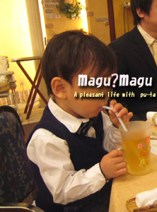 日曜は友人の結婚式に3人で出席しました。金曜の疲れがとれないまま あうう~~と体をひきずりながら(^^;)結婚式をあげた友人は 入籍は3年くらい前にして、現在9ヶ月になる男の子もいるんだけど、ドタバタしててなかなか式ができなくて、今回ようやく、、っていうことだったんです。この友人は いも(旦那)の学生からの友人であり、また まぐのチャット仲間で、いも(旦那)とまぐが知り合ったのも奴のおかげだったりします(笑)でも 私 子連れのホテルチャペルの結婚式初めて見たんですよ(笑)まず新郎が赤ちゃんを抱っこして入場。この光景がすごく新鮮でしたね~~結婚式といえば 大怪獣(ぷー太)を静かにさせることが私たちのミッションです(--;)教会に入ると同時に口に飴玉をIN!!今回はなかなかうまくいきましたね(^0^)Vいも(旦那)は友人代表挨拶をする予定だったんだけど、前日になって乾杯も頼まれてしまい、かなりテンパっていました(^^;)友人代表の挨拶文も夜中の3時まで考えて、それでもいい言葉がみつからなかったらしく、見るに見かねた まぐが かしなよ!!って言って文章をワープロうちしちゃいましたね(笑)専門時代のエピソードをカタカタとパソコンうちするまぐにいも(旦那)が「なんでそんなこと知ってるの?」とか言ってました(笑)ふふふ まぐは何でも知っているのだよ( ̄▽ ̄=)結婚式は ぷー太には天国♪ジュースが飲んでも飲んでも注がれる(笑)まるで わんこそば(笑) ちゅぱー!!その後の オムツ 激重!!!(笑)今回の週末は盛りだくさんでした。疲れた~~