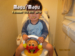 昨日 (^う^)りぼーさんの日記を見て、そうか~トイレトレーニングかぁと思い、ちょっと試してみようと思いました。ぷー太は今2歳3ヶ月。この夏くらいからトイレトレーニングの予定でした。トレーニング用の補助便座も 以前ゴンザママさんに譲っていただいて準備万端です(^^)いつ使いはじめてもいいように最近ではトイレの中に出してありました。、、で 昨日 日記を読んだあとすぐに思い立って、とりあえず便座に座らせてみよう!おしっこは出なくてもいいから!という気持ちで実行!!その結果、、、、 大泣き(><;)ダメでした。大泣きです。足が下につかないし、下はスースーするしで怖いのかもしれませんね(^^;)これは無理強いしないほうがいいんですよね?そんな昨日の今日。こどもチャレンジの教材がトイレトレーニングのDVDと絵本とトイレでしまじろうが「おしっこ?うんち?」て喋ってくれる教材。なんてタイムリー!!!!まずはDVDとか見せて ゆっくりやっていきます(^^;)だけど、昨日夜、うんちした後 「うんち」って言ったんですよ!!!!おお~~~~~~!!!!これって大進歩ですよね(^^)、、、でも今日は言わないんですけどね(^^;)笑