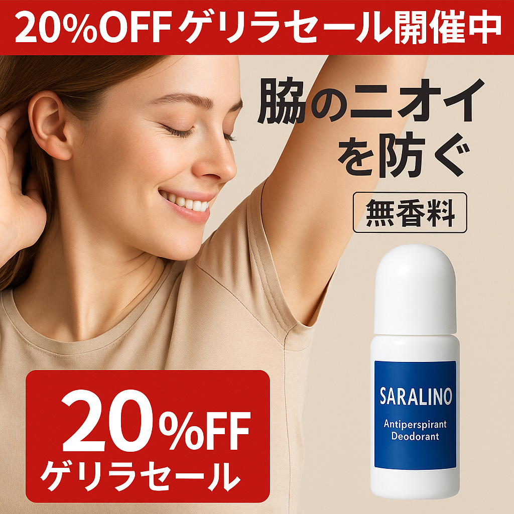 \[20%OFFゲリラセール中]多汗さん 強い味方/ 手汗、ワキ汗、足汗、気になる汗 これ1本でしっかりブロック[こんな悩みありませんか?]✅満員電車で汗が気になる✅手汗がダラダラ止まらない✅ニオっているかもと心配になる✅脇脇がパッドじゃ防げない サッと1プッシュで爽快❗️ 真夏でも手軽にサラサラ素肌 人前で汗が気になるあなたへ🌷 ---------------------------------- ニオイレベル ゼロへ スプレー型だから 手が汚れない🌺 ----------------------------------\\送料無料&レビュー高評価/▶️セール中、今がチャンスです❗️(楽天)【20%OFFゲリラセール開催中】サラリノ 制汗剤 デオドラント 脇 多汗症 手汗止め 塩化アルミニウム液 塩化アルミニウム 汗止め 無香料 脇汗 足汗 手汗 メンズ レディース 日本製 SARALINO楽天で購入#サラリノ#制汗剤#多汗症対策#塩化アルミニウム#手汗対策#脇汗#汗止め#無香料#楽天セール#コスメ
