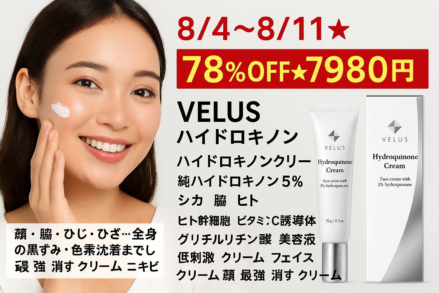 サーモンPDRNでぷるん肌純ハイドロキノンで明るさPDRNとハイドロキノン、ナイアシンアミドやセラミドなど美容成分を豊富に配合し、しっとりしつつ透明感、弾力ケアを目指すクリームです。保湿やバリア機能、くすみを改善します。[特におすすめの人]✅[白玉点滴]が気になっているけど、美容 皮膚科は敷居が高い✅韓国🇰🇷コスメ好きで**PDRN(サーモンDNA)など最新美容成分に興味がある方✅何を使ってもパッとしない方✅肌がゆらぎがちで、優しくスキンケアを 探している方[使用上の注意]顔全体へ塗布はお控えください。大量に塗り込むことは控えて下さい。気になる部分へごく少量塗布する万一、お肌に合わない場合は、返品 返金対策してます。【2】「塗る白玉点滴」とは?(化粧品)項目内容形状クリームまたはジェル(チューブ型・ジャー型)成分グルタチオン配合(点滴成分をスキンケアに応用)目的美白ケア・透明感・くすみケア・ハリ感アップ針の有無❌針なし。「マイクロニードル」ではない特徴自宅で日常的に使える/「点滴級」と強調しているだけ:コスパ重視の「おうち美容医療」 • 美容医療は 高額・ハードルが高い。 • それに対して、こうした商品は「低価格・毎日ケアできる」を武器にしています。 • まさに「美容クリニックに行かなくても“透明感・ハリ”が手に入る!」という発想から生まれた、新しい時代のスキンケアです。\今話題し塗る白玉点滴クリーム/\最強のシミ対策クリーム、ついに登場✨/VELUSの「HQホワイトクリーム」は、🔥純ハイドロキノン5%配合 × ヒト幹細胞 × シカ成分🔥で、本気の美白ケアを叶えます💎顔・脇・ひじ・ひざ…全身の黒ずみ・色素沈着までしっかりアプローチ🌿[8/4-8/11日まで】★お気に入り★78%OFF★7980円⇒1668円★半額チャンスでゲットの大チャンス💥▶本気でシミをなくしたい方におすすめ💖#本気の美白 #シミケア革命 #VELUS #純ハイドロキノン5% #黒ずみケア #ハイドロキノン5%#シミ取りクリーム#美白ケア#色素沈着対策#色素沈着対策#黒ずみケア#スキンケア好きと繋がりたい#VELUS#透明感のある肌へ#敏感肌でも使える#美白集中ケア送料無料&レビュー高評価▶️今すぐ商品ページを見る(楽天)
