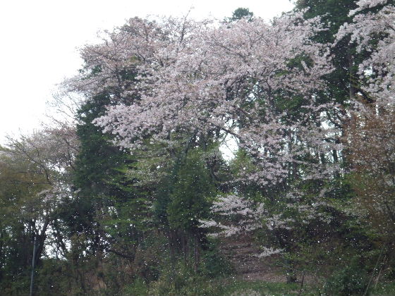 Cherry blossomes are dropping. Can you see the petals like snow in this photo?