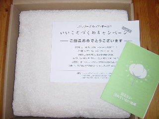 今日のお届けはオーガニックコットンのバスタオル【P&G】 と、先着なので当選品に入れませんが芳純讃岐そうめん&芳純讃岐ひやむぎ【石丸製麺】 が届きましたバスタオルはかなり大きくてフワフワでとっても気持ちいいです早速私の使ってるタオルを片付けて明日から新しいのを使うつもりですあとは、年賀状の切手シートを交換してもらいに行ってきましたが、私の前の人は2等のふるさと小包の申し込み封筒をもらってた~局員さんも「おめでとうございます!」ってニコニコとああ、、、羨ましいっそれから私の番になり、当選ハガキを渡して交換してもらったんだけどさすがに「おめでとう!」はなかったね(爆)まぁどうでもいいんだけどね~ってか、こんなに3等あるのにどうして2等が1つもないのよぉぉぉぉぉ~~