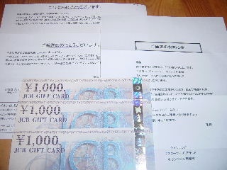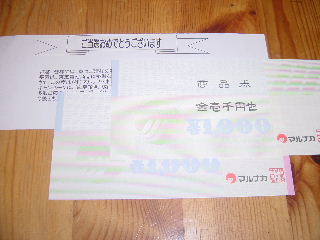 土曜日は久しぶりに旦那がお休みだったので兵庫遠征行ってきました~回った店舗30店収穫ハガキは59種ボチボチかな~日曜日は鳴門~徳島市内~小松島方面回ってました回った店舗17店収穫ハガキ17種だったかなぁ~土曜日は帰ったら2件届いてましたマルナカ商品券(2000円)【マルナカ・エスエス製薬】 2007年開運グッズ【so-net】