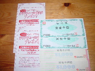 昨日のお届けものはマルナカ商品券(2000円)【マルナカ・ニチレイ】キョーエイ商品券(2000円)【キョーエイ・ニチレイ】 北海道の味覚カタログギフト【大丸ピーコック・ミルクランド】 ブレスレット【マツキヨ・ユニリーバ】 エコバッグ【イオン・コカコーラ】 ニチレイは本命の商品券が2つも届いて嬉しいです♪あと2件だったか、旦那実家でも応募してるので金券期待(来てないかも!?)ミルクランドは〆切りが遅い分を遠征時に見つけて商品購入してみました。こっちでは商品見かけないからねぇ~コカコーラも頑張って1口応募したんだけどやっぱりエコバッグ・・・( ̄□ ̄)!!エコバッグ在庫ありすぎ(爆)