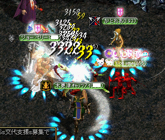 ブログの方、大分書く時間あったんですが見事にスルーしてました。どうもマイナです(ノ´∀`;)クリスマスが終わりましたー。みなさんどのようにお過ごしになったでしょうか(´・∀・`)街はクリスマス一色に彩られている中、RS一色っていう方もいたようですねw自分はプレセント交換しました(*゚∀゚)=3ハァハァケーキこんなに多くもらっても食べ切れません^^;このままで年越ししそうです^^;反対にドレスあげました!売れ残りの^^処分に困っていたのでとっても都合よかったです('∀`;)--------------------------------------------------さなまりは年末年始、旅行期間になりました。なのでまた蛙ギルドにお世話に。こんな紙剣士雇ってくれるギルドはなんちゃってしかありません^^;就活きびしーですね^^;さっそく、戦ありました~。このブログ長い間、戦ネタ書いてませんでしたね。ちょくちょく書きますね。今晩のお相手はオブスティネートアロウさん。矢の紋章がとっても素敵なギルドさんです。張り切って準備して転送!この人数少ないと取るでしょうか。多いと取るでしょうか。多い少ないに関わらずWIZなしド━(゚Д゚)━ ン !!!転送されてから気づいたので時すでに遅し。WIZで来れば良かったとつくづく後悔(ノ´∀`;)ヘイストないと3フレいかないので4フレでした(´・ω・`)ショボーン始まりから点数が大きく離れました。やっぱりアスヒなしでは生きていけませんwWIZ様偉大です(`・ω・´)次々と倒れていくメンバー。そんな時、取った行動は…えすけーぷ^^石投げられそう(;^ω^)))逃げました…逃げました…敵がイタ━━━━(゚∀゚)━━━━!!!!やはりここでもWIZの偉大さを痛感しましたw無理無理w着々と倒されていってしまいマケター(;´д`)みんなやっぱり年末で忙しそうですね(´Д⊂グスンまた再戦したいです、オブスティネートアロウの皆さんありがとうございました。------------------------------------------------------おまけありがとうございます(ノ´∀`*)ではまた次回にお会いしましょー(´・ω・`)/~~