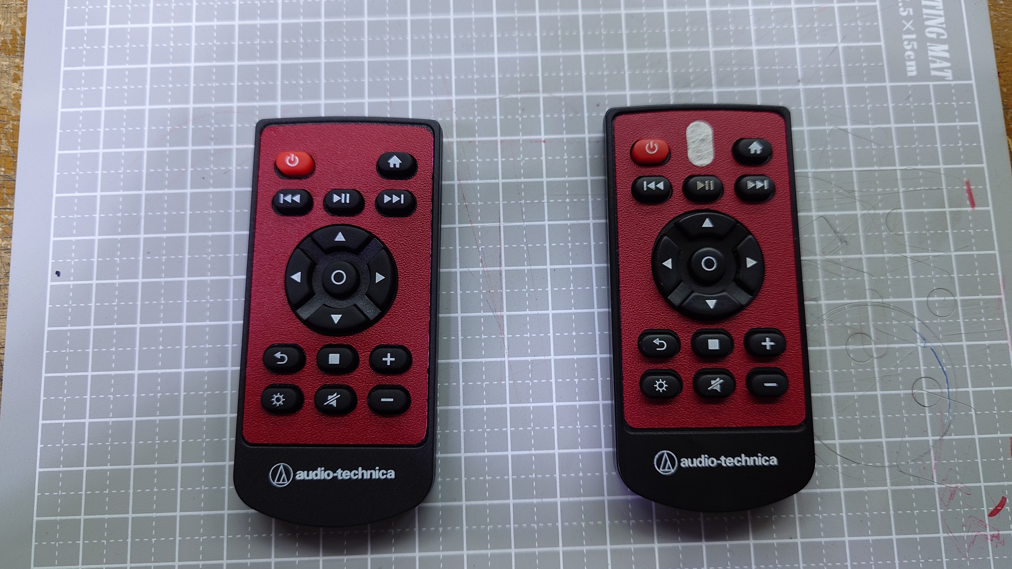 AT-HRP5のリモコン毎日握りしめていたらかなり反応が悪くなりやがりましたので分解して清掃しようと思いましたが分解して使い物にならなくなったら目も当てられませんので先に予備を注文分解して清掃したらちょっとはましになりましたが調子の悪くなったリモコンはいずれ駄目になるかと思います殻割りは長辺の継ぎ目にプラの100均のスクレイパー当ててで簡単に割れます老眼@管理人はオリジナルのまま真っ黒では絶対車の中で行方知れずにしてしまいそうな予感がするのでダイノックシートでついでに着せ替えましてベルトの風車は回りませんがリモコン1号 2号完成^^スキャナで読み込んで化石化しつつあるプロッタで無理矢理ダイノック切らせてみたwwwかなり厳しいです刃が痛みそうなのでお薦めはしませんwww明日 19日(水)は定休日になります20日(木)春分の日は通常通り13時より開店予定です決して忙しい店ではないのですがいえ、どちらかと言えば暇な店ですがwどういう訳か、お客様って重なるもので@管理人一人で運営しているのでお手数ですが、ご来店の際事前に電話/メールなど頂けますと幸いです春分の日を目前になごり雪の予報は天気の神様も意地悪ですね