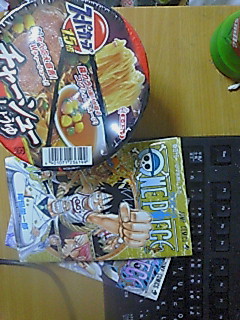 ↓俺の今日の晩飯と帰りに買って来たワンピース2冊です!