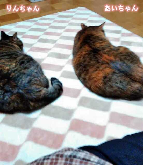 りんとアイが、同じスタイルで寝ています ユウがいないとりんが気楽に寝ますが、ユウが来るといなくなる ユウが悪いのよ りんとクロが来ると、すごい顔して出ていけとすごむのよ。 私がいると少しは遠慮するけどね いつも食事会をしていた50代の子が、12月初めだかにコロナに感染、今はもう陰性になり仕事しているけどね。 老人ホームの看護師だから、危ないよね。 食事会をしたのは去年の9月頃よ。 老人ホームにはいろいろな人がいるから、仕事中に感染したのよ。 自宅療養で、何もないうちに陰性になったみたいよ。 ほかに大変だった人もいたと言うから、何人か移ったんじゃない? いつものお喋りおばさんが、旦那さんが入院中で、ランチしようよと電話してきました。 散々電話で喋ってから、いつにしますか? と言ったから、もう大分話したから、もう少し落ちついてからねと言ったら、がっかりしてました。 そんなに人と話したいかね😛 私は1か月でも2か月でも、別に平気だけどね じゃあね😁😸😸😸😸😸😸