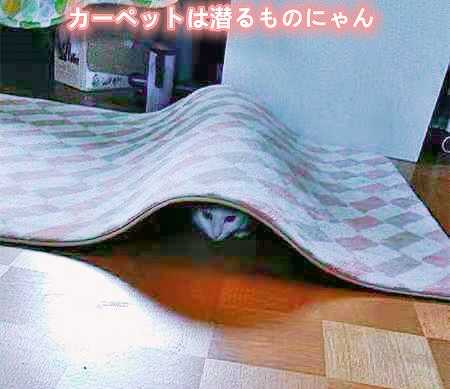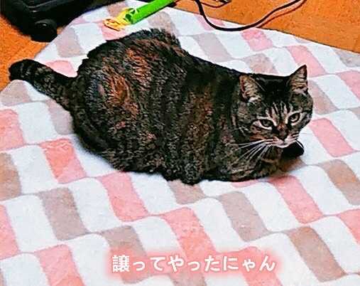 寒がりミイが、カーペットの下にいるのよ 1日に何回も出たり入ったりよ 免許証更新前の認知症の検査に行きました。 すごく簡単で、心配して損したと言う感じです。 でも、80歳だと言う人がいろいろ説明聞いて、さあ始めて下さいと言われたのに、「何を書くんだ?」と言っていました。 あれは不合格だね 結果が出たら、自動車学校で目の検査と乗車の検査を受けるのよ。 そこで書類をもらって、それから警察に行き、免許証を取りにいく流れよ。 いつも電話かけてくる「お喋りおばさん」は、運転のテストの時、いちいち「ここで止まります。右見て左見て出発します」と言ったそうよ 流石だわ 私はそんなこと言えないわ。 とにかくオーバーにやった方がいいんだってよ。 最近りんは、じいさんの布団の足の方にいるわよ ユウは時々じいさんの部屋、時々私の椅子に寝てる 気まぐれだね あとの子は、ほとんど私と一緒に上にいます じゃあね😁😸😸😸😸😸😸