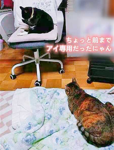 りんは、いつも寝ていたベッドにミイがいて、大喧嘩してましたりんが負けて、窓際の机に行きましたアイは私のベッド、ユウはカーペット、クロは鳴きながらうろうろしていますミイが一時おとなしかったのは夏の頃よ。意地張って暑い部屋にいたから、きっと暑くてグロッキーだったんじゃない? りんと喧嘩してでも場所取ったのに、今はその後ろの小布団に行ったわよ。ミイはわがままなんだからとにかく自分の食べたい場所、寝たい所、チュールなんてさっさと自分の分を食べて、ほかの子が食べているのに、ずんっと顔を突っ込んで食べちゃうじゃあね😁😸😸😸😸😸😸
