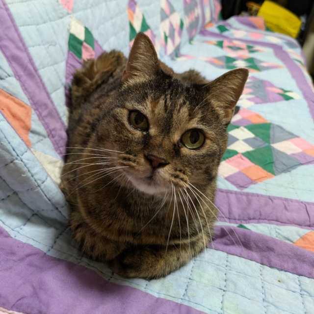ミイが甘えて来ましたよ。目が汚くて可哀想です。でも、あまり本人は気にしてないみたいで、それが救いです。黒いのが毛に染み込んでいるから、拭いたくらいじゃ落ちないのよ。塗り薬も付ければ目がきれいになると言うのは、結構強い薬だと思うから、あまりつけたくないからね。拭き取る時は、比較的おとなしいけどね🤗リンは、首のところにイボみたいのが子どもの時からあって、2、3年くらい前には掻きむしったことがあったんだけど、今きれいにないのよね。以前獣医に見てもらって、小さい時からあって、大きくならないなら大丈夫よとは言われていたんだけどね。さっき催促してきて抱っこして、首の辺りに触ったらないことがわかったのよ。猫どもは毎朝晩チュールの催促、抱っこの催促で五月蝿いくらいよ🤭それが済むと、さっさと寝てしまうわよ。今日の私のご飯は、スープ餃子にほんの少しご飯をいれて、餃子おじやです。私もあまり体調は良くないけど、猫と自分の毎日のことは十分やれているので、困りはしませんけどね。毎日猫とゴロゴロしています。でも明日は午前中接骨医、午後は呼吸器科の通院に行きます。この間M子(次女)がパール・バックの「大地」の文庫本を送ってくれました。何十年ぶりかに読んで、感動しています。4巻まであるからね。アメリカ人がよくあそこまで書けたと思うわ。19世紀後半から20世紀始めの激動の中国の農民を、3代にわたって書いてあるのよ。貴女も読むとよいわ。私も大昔に読んだけど、ちょうど清朝末期からの時代のを読みたかったので、本屋にないかなあと思っていたのよ。やはり本が一番だね。パズル誌も定期購読してるから、発売が楽しみよ。じゃあね😁😸😸😸😸😸😸