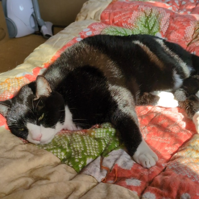 2階の和室の畳の隅っこにいたから、私の布団に連れてきたら最初怒っていたけど、そのまま寝たわ🤭