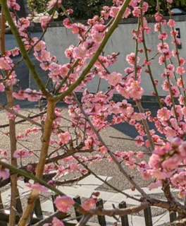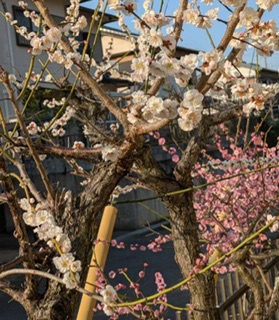 庭の紅白の梅の花が満開です。