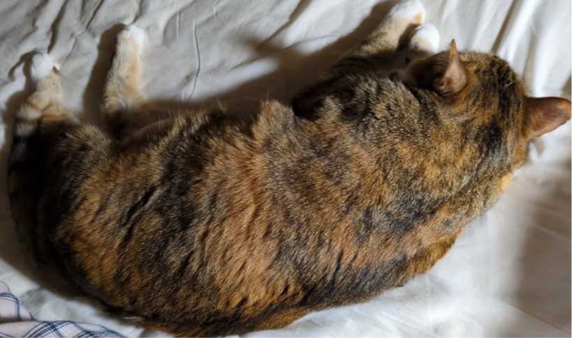 「絶対に動かんぞう。ここはわしの寝床だ😤」のアイちゃん🐈