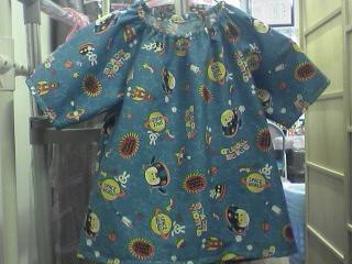 昨日、生地を買ったので今日は早速ミシンを出した!まじょのミシンは2代目でSINGER(シンガー)製。小学校の授業で使っているのと同じで使い易いとの営業トークで7年前に買ったある意味贅沢品。たかがスモッグ。されどスモッグ。型紙に合わせて裁断してなんとかミシンの出番。このミシン、難しい操作はないんだけど・・・ミシンと私、久しぶりのご対面なのでぇ(~_~;)思うように縫えずイライラする!!(ただの短気かも)ついには、下糸がからまる・からまる!もぉ~ボビンを外して分解までしたけど、原因がわからない!っと、ふと見上げた時、上糸が抜けているじゃない!そんな単純な間違えをして、あ~自分にイライラする!(相当の短気)結局、一日中ミシンと格闘した末、やっとできたスモッグ。づがれだぁ~生地は380円だけど、人件費はかなりのモン♪