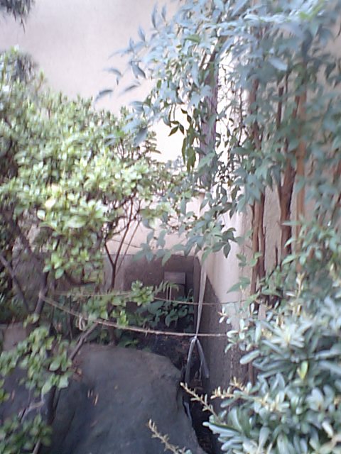娘が「こわ~い」というので、玄関から外見たら、枝に覆われていて、