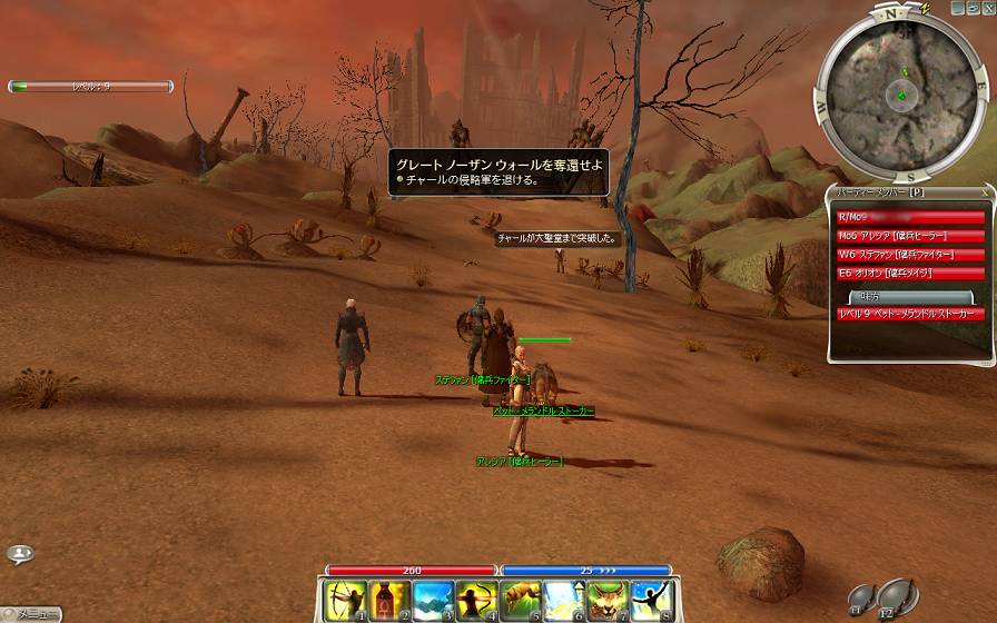 70前後で放置してあったFoを必死でアルチ入りさせるために挙げてました。装備が揃っているとVHまで は楽ですね。マシンガン拾って撃ってみた時ダメージが7や8だった時はもうね・・・1人用遺跡もサクサク回れば結構美味しかったです。 この後無事90になれたので一旦保留。キャラを変えチームクエスト周ってました1週目で歓迎されたようです ちなみにHPmaxの時体当たりされると残りHP18しか残りません。正直ヤヴァイです これは死ねます・・・・実は1度死んでます('A`)バトンという物を落としてくれたのできっと歓迎してくれたはずです。
