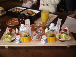 今日は娘の初節句!実家からバーバ達を招き、上野公園内にある『韻松亭』でお祝いをしました。上野公園は寒桜などが咲いており、花の香りがただよっていました。明治8年創業の『韻松亭』は、雰囲気もよく、庭園が見える個室でした。料理は、豆菜料理を中心にお豆と季節の新鮮な食材。湯葉やおくら、おくら茶などがでてきました。バーバ達も大満足だったようです。前菜はこーんな感じ↓主役の娘は何もたべられませんけど…。息子はお子様コース。デザートは豆乳アイス。アイス大好きの息子は豆乳の味は苦手だったようです。