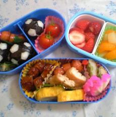 ●●●GWスタート!連休初日はとても良いお天気です!今朝はいつも通り早起きして、お弁当作りでした。三男が卒園した園のお見知り遠足の日学童保育に登録してるので小1の三男も参加します。今日のお弁当はこちら! 毎回、変わりばえしませんが(汗)先ほど、大型バスに揺られて出掛けていきました。参加できる喜び半分、母が手を振る姿見てちょっぴり淋しげな笑顔で手を振る三男クンでした。さ!甘えん坊の三男が居ないので少しでも仕事をすすめなきゃ!!!●●●Designed by unamama