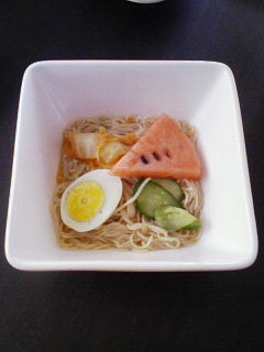今日は、例の韓国料理ワンコイン料理教室でしたメニューは、冷麺 とチヂミ おいしかったチヂミにつけるたれを『ヤンニョムジャン』って言うんだけど、これが絶品 『ヤンニョムジャン』 の作り方 醤油 大さじ1・酢 大さじ1・ごま油 小さじ1・砂糖 小さじ1 唐辛子粉小さじ 1/2・ねりごま(すりごまでも) 小さじ1 ねぎ(はねぎ) 1本・おろしにんにく 小さじ1/2 この材料を混ぜるだけ。このたれ、冷しゃぶのたれにしてもおいしそうよ~ でもさぁ~また同じおばちゃんばっかり ひぇ~この町には若い子がいないのかね???ってか、人気ない???500円で教えてもらえるなんていいと思うんだけど。次回10月と12月にまたあるらしいけど、どうしよう?10月はピビンパで12月はキムチ鍋をやる予定らしい。すっごい魅力的でも・・・。 おばちゃん軍団が来ると思うと・・・。心の余裕があったら行こうかな アハハ