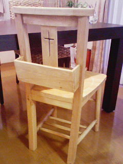 わーい わーいちょこれーとこすもすさんで頼んでいた椅子が到着しましたちょっと新品っぽいので、これからワックスを塗ったりしてアンティーク風に味がどんどん出てくるわ~~ いい感じ~ 2階のマイルーム計画にと思ったんだけど、お嬢に見つかってしばらくは(熱が冷めるまで)お嬢の食卓用の椅子になりそう早く返して~~