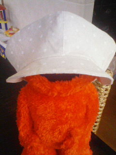 がんばりましたぁ~こないだきた『はんど&はあと』に載っていたキャスケットが無性に作りたくなって・・・生地はベージュに白の水玉です。シンプルすぎ~??? 微妙にてっぺんがずれたり、ちょっと色々と修正をしたけどなんとかわ~い わ~い型紙どおりにやったつもりなんだけど・・・。つばが短い気が まぁ~不器用の私にしては上出来じゃない (自己満)ってか、いっぱい いっぱい ふぅ~。次回は、生地を変えて作ってみよっと
