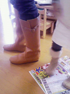 1ヶ月半前に予約していたKOOSのブーツがやっときました。ず~とほしかったんだよね。 きゃ~かわいいちょっと隣のアホアホちゃんがまねをしてとっても邪魔だけど・・・。ちなみにこのモデルは相方です 履けるのかよっ
