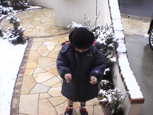 こちらは千葉県なのですが、雪ふりましたねー♪今朝、ちょっとだけ積もってました。幼稚園に行く前に、記念写真を「パチリ」。この辺は、ほとんど雪がふらないので、雪景色にちょっと興奮してます。 でも今日はお天気良さそうなので、あっと言う間にすっかり溶けて無くなっちゃうんでしょうね~。 ←ブログ村には沢山のブログが大集合だよ♪