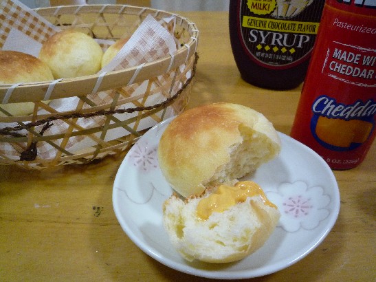 お水の量を減らして、代わりに卵を入た生地で「卵丸パン」を焼きました♪ちょっぴり黄色い卵色で、とっても美味しく焼けましたよ 先日のグアム旅行で買ってきた缶入りチーズ「CHEEZ-IT」とチョコレートシロップをお好みで付けて食べました「CHEEZ-IT」は濃厚なチェダーチーズで、スプレー缶からニョロ~っと出てくるので、お手軽に使えてGood♪です。 ←パン作りのブログが大集合★ ←お料理ブログが大集合★↑↑ 応援クリックお願いします↑↑ 今日は、ハロウィン仕様のお菓子の型をご紹介しますWiltonシリコンマフィン型(ゴースト)6p_2105-4877Wiltonカラークッキーカッターセット9p(ハロウィン)_23082501マフィンカップ(ハロウィーンナイト) 50枚design by JOKER